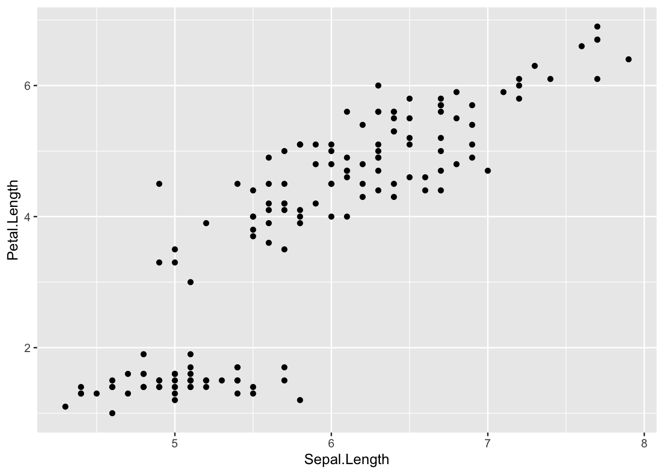 plot3 <- ggplot(iris, aes(Sepal.Length, Petal.Length)) +