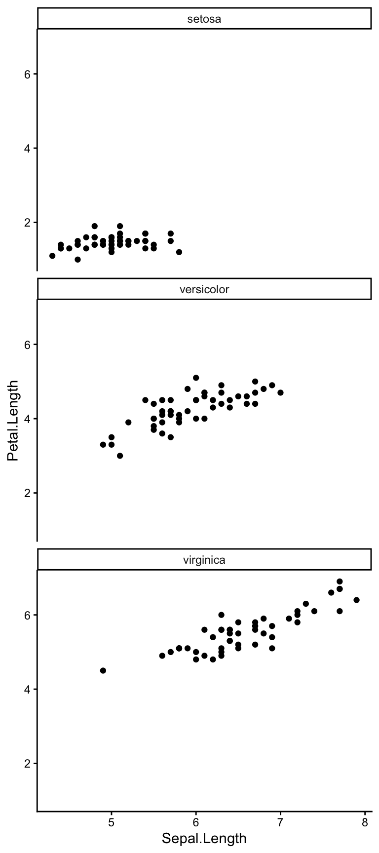 p + facet_wrap(~ Species, ncol = 1)