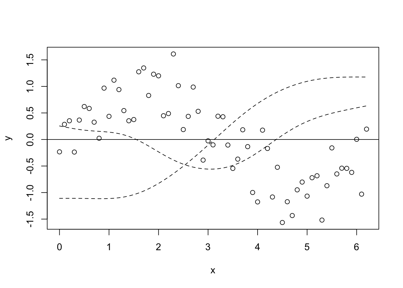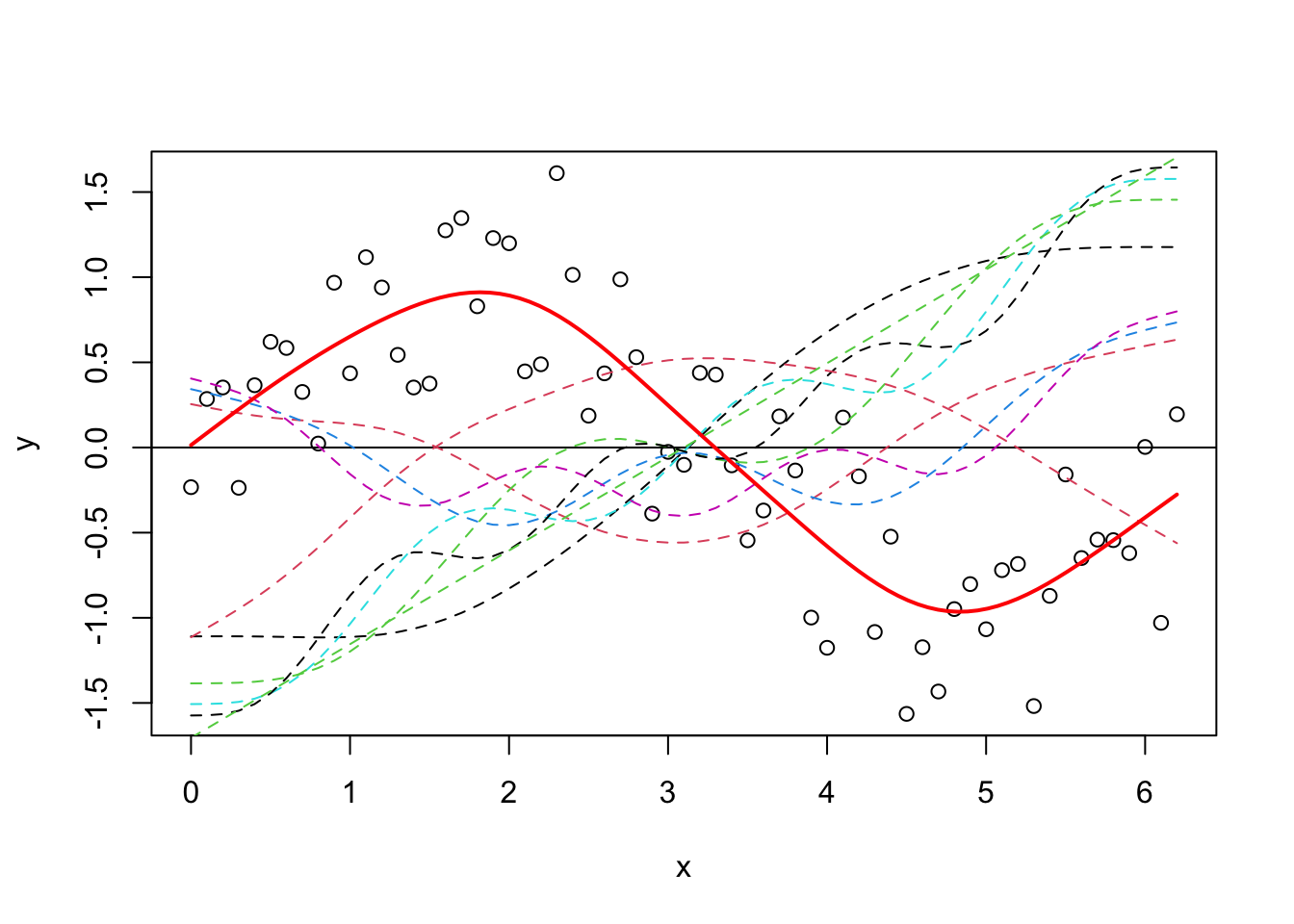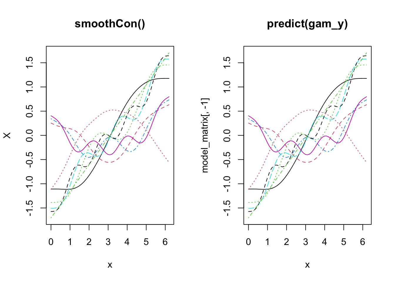 lines(x, model_matrix[, "s(x).2"], type = "l", lty = 2)