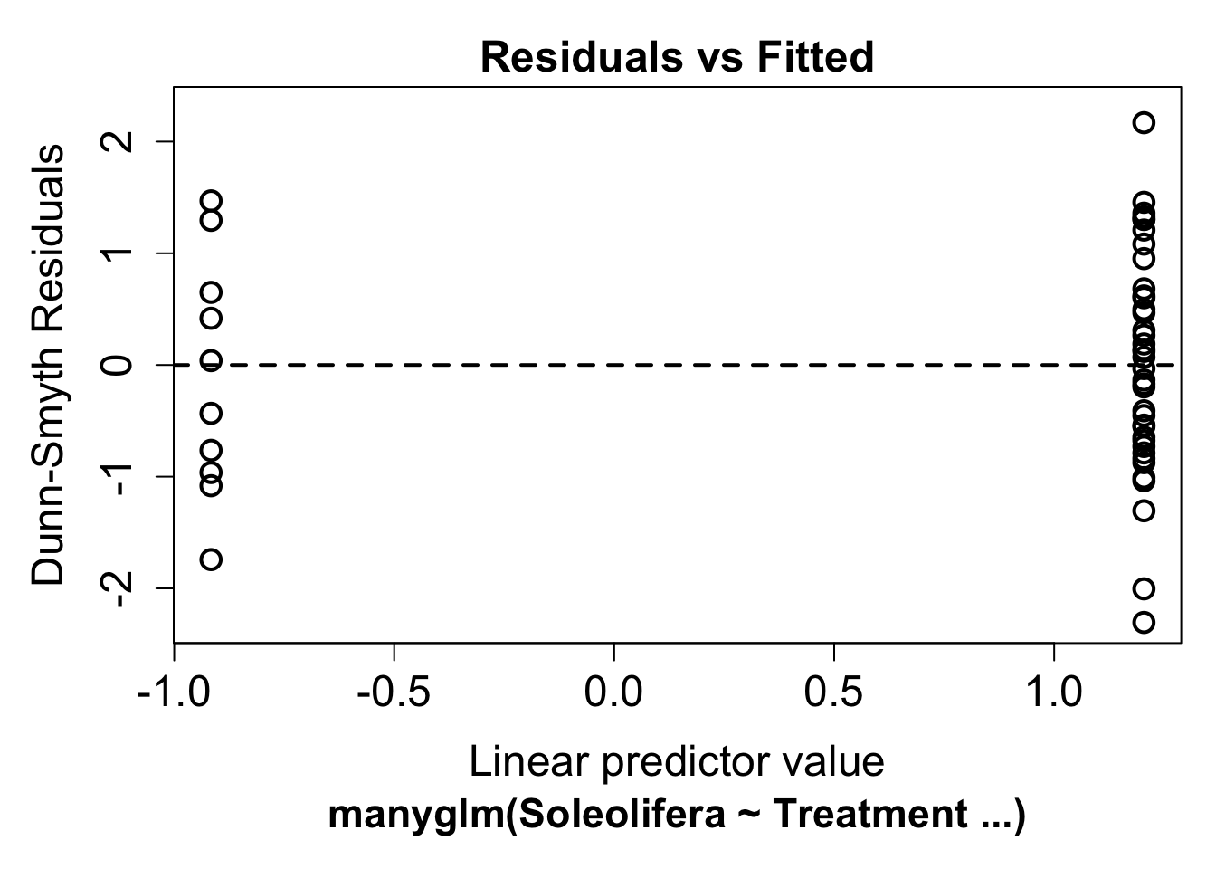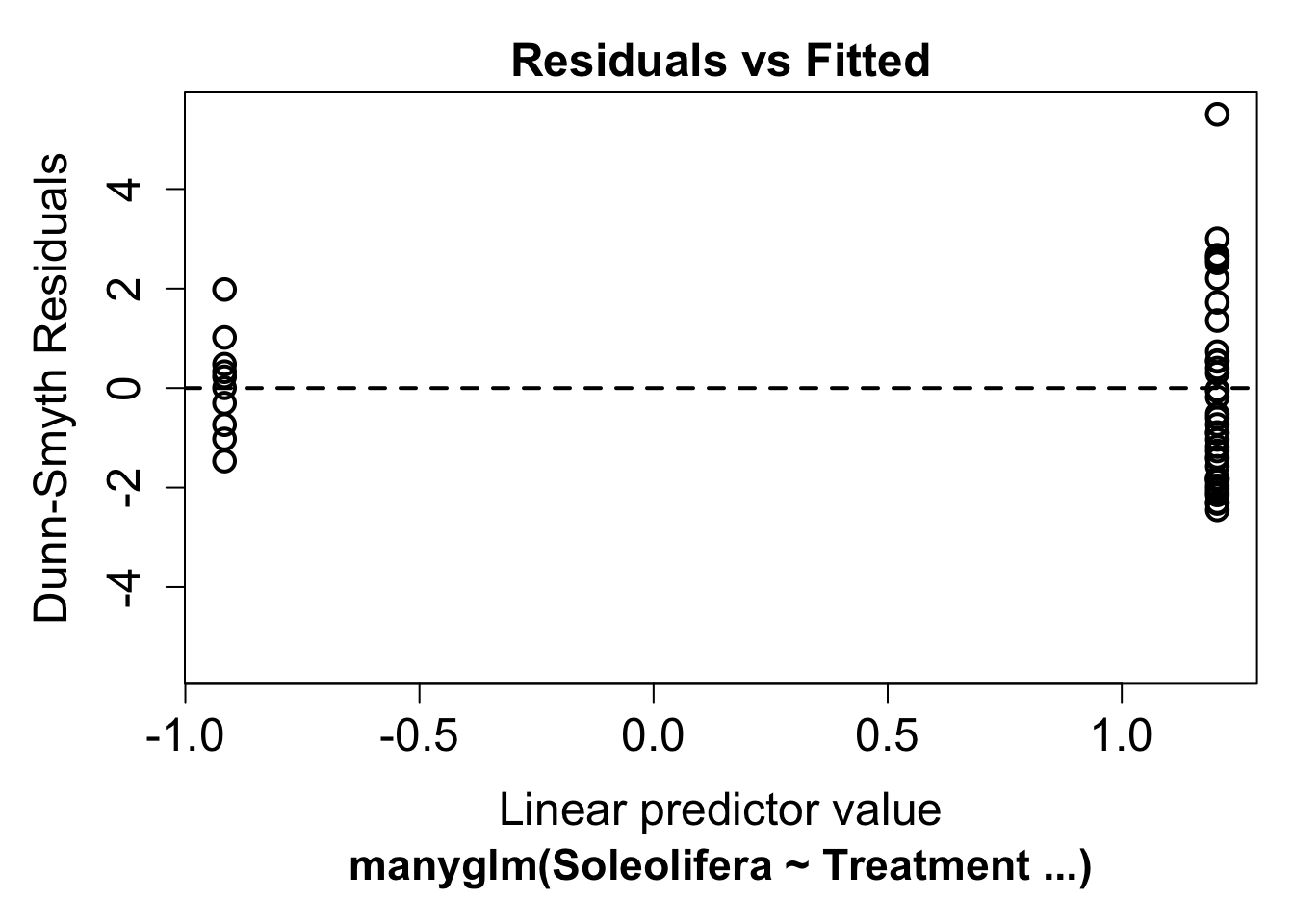 ## Warning in default.plot.manyglm(x, res.type = res.type, which = which, caption =